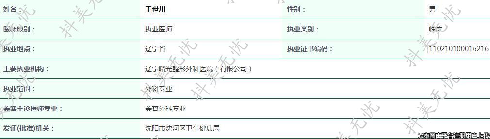 主要執(zhí)業(yè)機(jī)構(gòu):遼寧曙光整形外科醫(yī)院(有限公司)