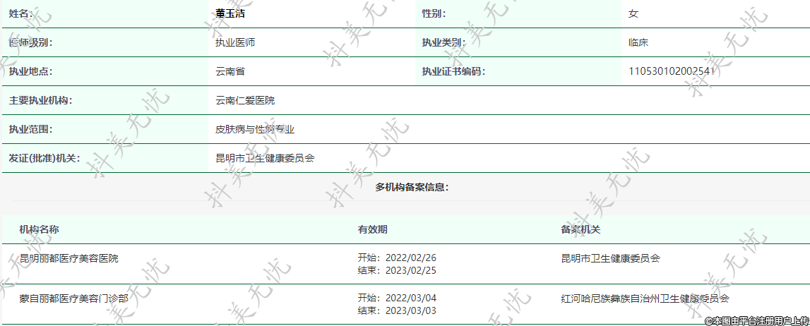 主要執(zhí)業(yè)機(jī)構(gòu):昆明麗都醫(yī)療美容醫(yī)院
