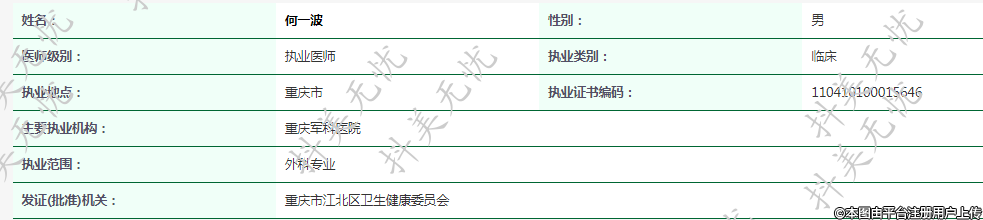 主要執(zhí)業(yè)機(jī)構(gòu):重慶軍科醫(yī)院