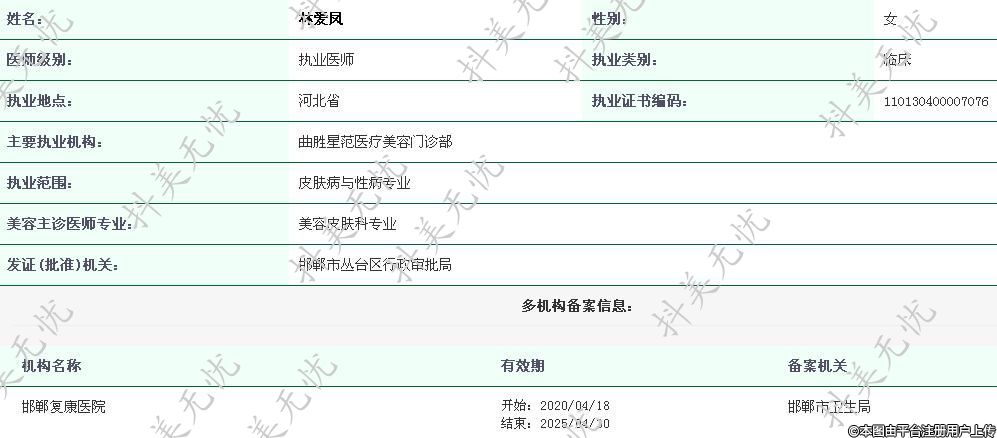 主要執(zhí)業(yè)機(jī)構(gòu):曲勝星范醫(yī)療美容門診部