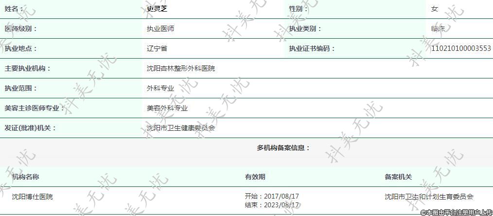 主要執(zhí)業(yè)機構:沈陽杏林整形外科醫(yī)院