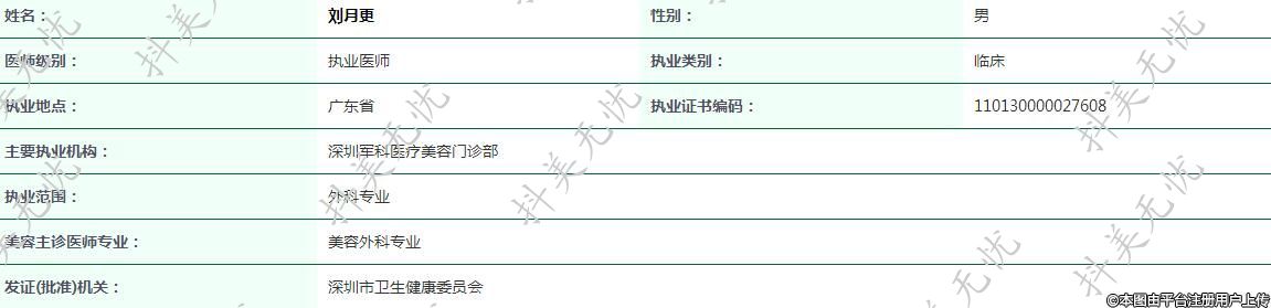 主要執(zhí)業(yè)機構(gòu):深圳軍科醫(yī)療美容門診部
