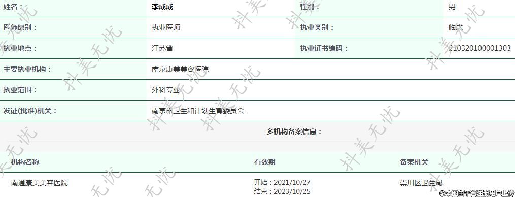 主要執(zhí)業(yè)機(jī)構(gòu):南京康美美容醫(yī)院