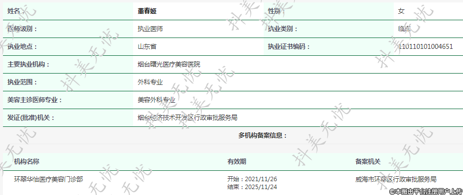 主要執(zhí)業(yè)機構:煙臺曙光醫(yī)療美容醫(yī)院