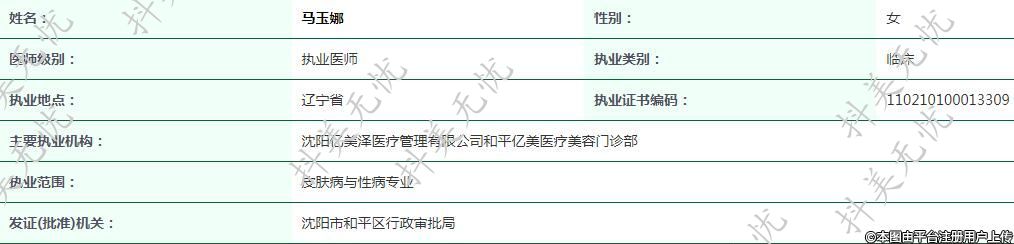 主要執(zhí)業(yè)機(jī)構(gòu):沈陽(yáng)億美澤醫(yī)療管理有限公司和平億美醫(yī)療美容門診部