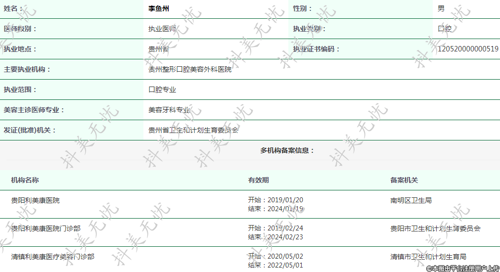 現(xiàn)任貴陽(yáng)利美康醫(yī)院執(zhí)業(yè)醫(yī)師