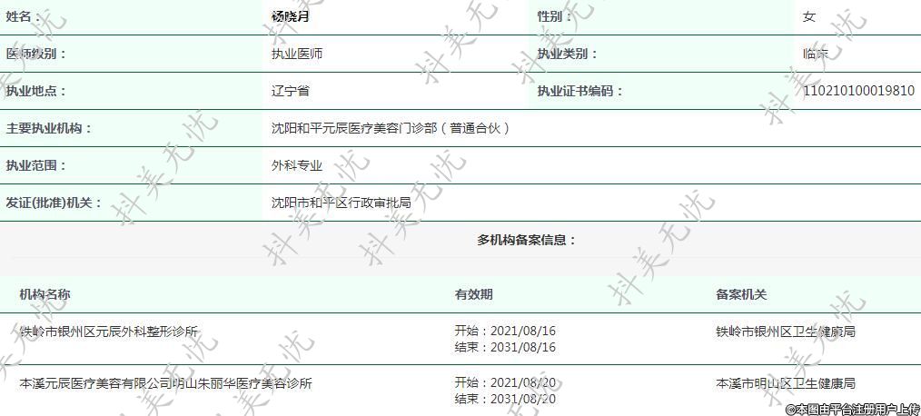 主要執(zhí)業(yè)機構:沈陽和平元辰醫(yī)療美容門診部(普通合伙)