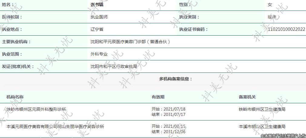 主要執(zhí)業(yè)機構(gòu):沈陽和平元辰醫(yī)療美容門診部(普通合伙)