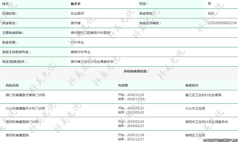 主要執(zhí)業(yè)機(jī)構(gòu):貴州整形口腔美容外科醫(yī)院