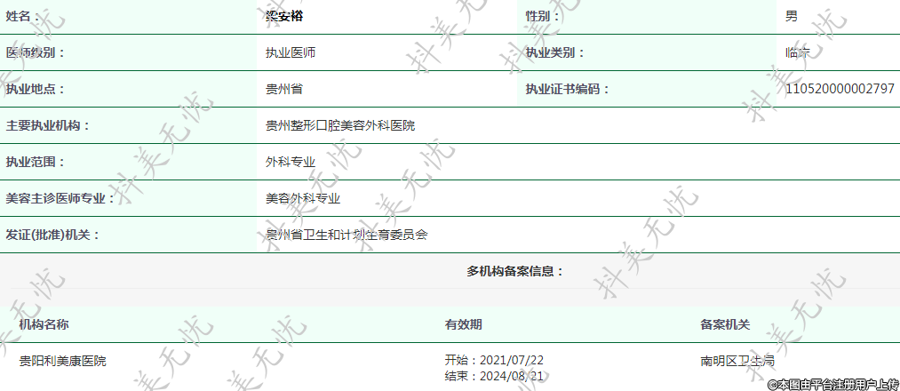 主要執(zhí)業(yè)機(jī)構(gòu):貴州整形口腔美容外科醫(yī)院