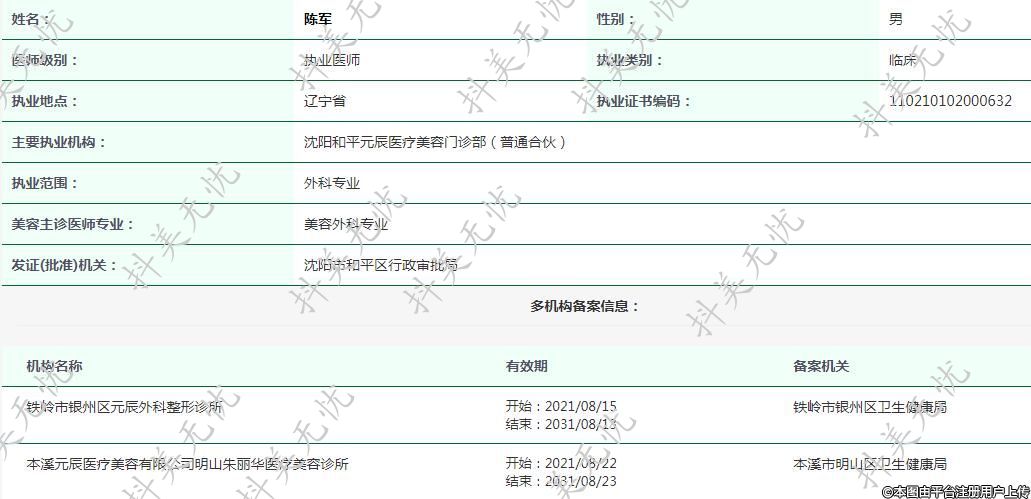 主要執(zhí)業(yè)機構:沈陽和平元辰醫(yī)療美容門診部(普通合伙)