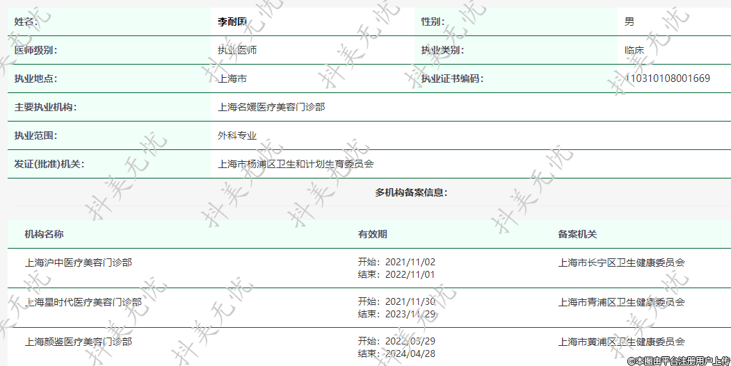 主要執(zhí)業(yè)機(jī)構(gòu):上海名媛醫(yī)療美容門診部