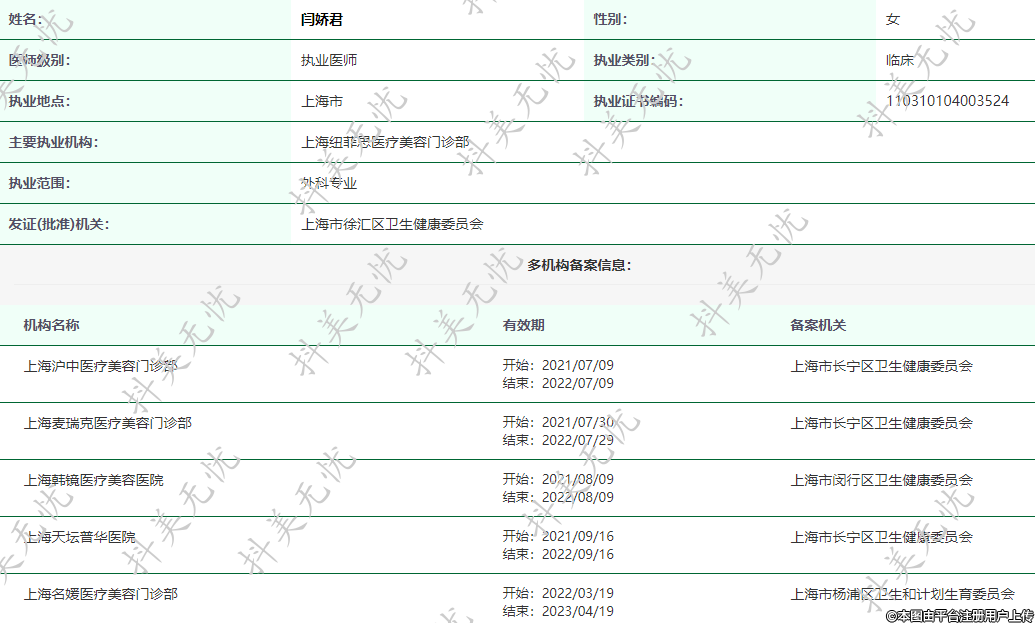 主要執(zhí)業(yè)機(jī)構(gòu):上海紐菲思醫(yī)療美容門診部