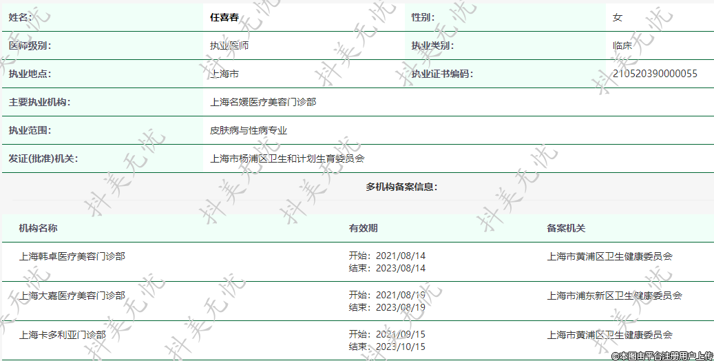 主要執(zhí)業(yè)機構(gòu):上海名媛醫(yī)療美容門診部