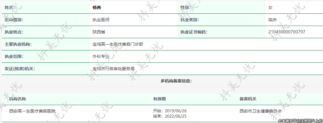 主要執(zhí)業(yè)機構(gòu):寶雞高一生醫(yī)療美容門診部