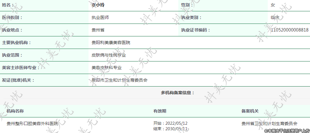 主要執(zhí)業(yè)機(jī)構(gòu):貴陽(yáng)利美康美容醫(yī)院