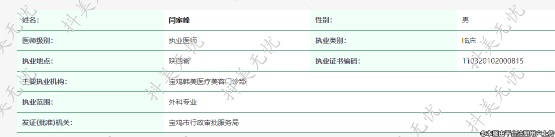 主要執(zhí)業(yè)機構:寶雞韓美醫(yī)療美容門診部