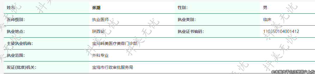 主要執(zhí)業(yè)機(jī)構(gòu):寶雞韓美醫(yī)療美容門診部