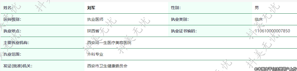 主要執(zhí)業(yè)機構(gòu):西安高一生醫(yī)療美容醫(yī)院