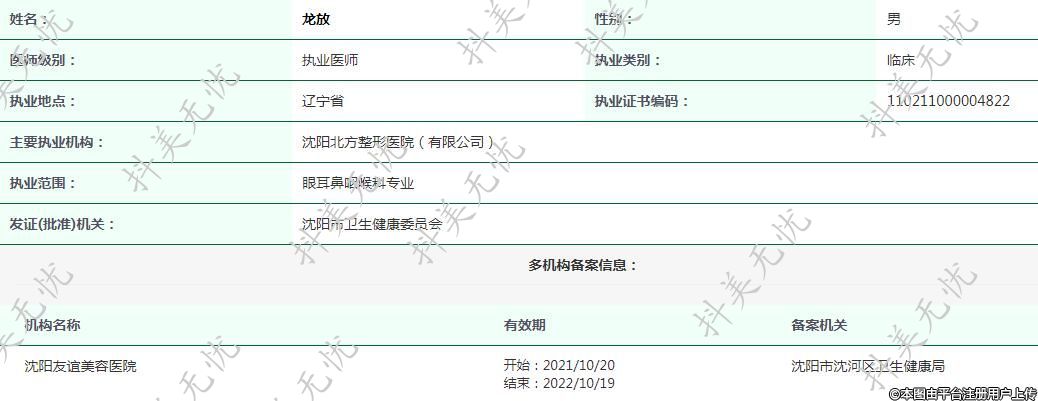 主要執(zhí)業(yè)機(jī)構(gòu):沈陽北方整形醫(yī)院(有限公司)