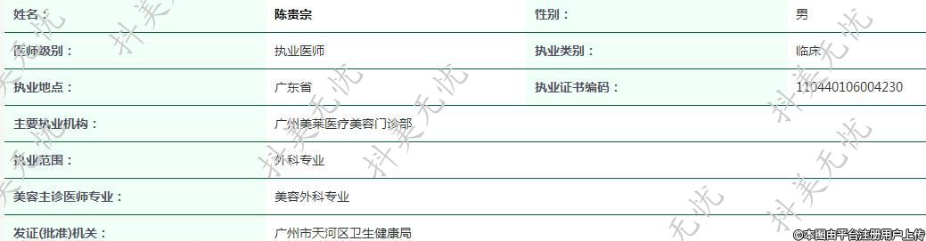主要執(zhí)業(yè)機(jī)構(gòu):廣州美萊醫(yī)療美容門(mén)診部