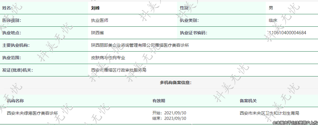 主要執(zhí)業(yè)機(jī)構(gòu):陜西麗即美企業(yè)咨詢管理有限公司雁塔醫(yī)療美容診所