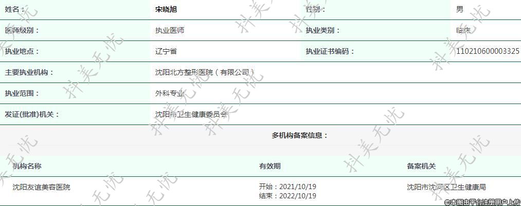 主要執(zhí)業(yè)機構(gòu):沈陽北方整形醫(yī)院(有限公司)