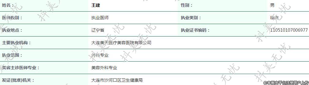 主要執(zhí)業(yè)機(jī)構(gòu):大連美天醫(yī)療美容醫(yī)院有限公司