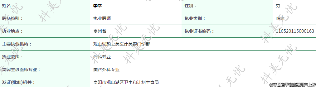 主要執(zhí)業(yè)機(jī)構(gòu):觀山湖顏之美醫(yī)療美容門診部