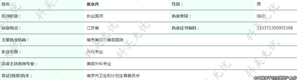 主要執(zhí)業(yè)機(jī)構(gòu):南京美貝爾美容醫(yī)院