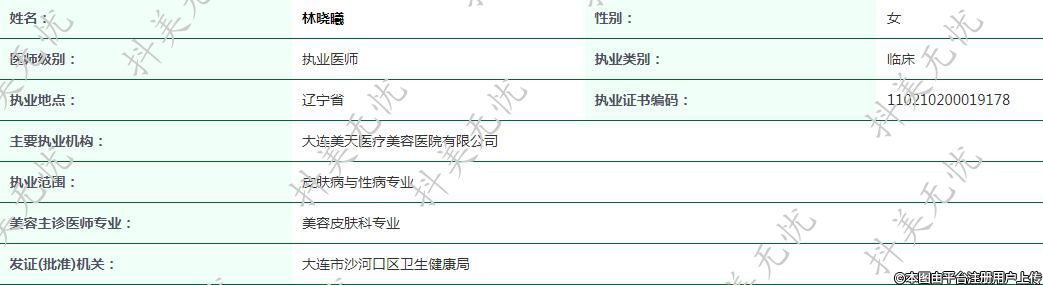 主要執(zhí)業(yè)機(jī)構(gòu):大連美天醫(yī)療美容醫(yī)院有限公司