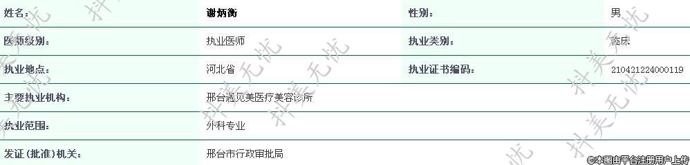 主要執(zhí)業(yè)機(jī)構(gòu):邢臺(tái)遇見美醫(yī)療美容診所