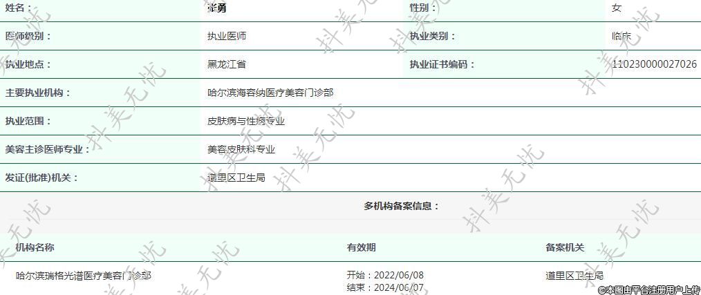 主要執(zhí)業(yè)機(jī)構(gòu):哈爾濱海容納醫(yī)療美容門診部