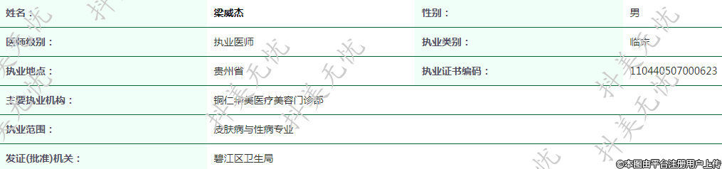 主要執(zhí)業(yè)機構(gòu):銅仁華美醫(yī)療美容門診部