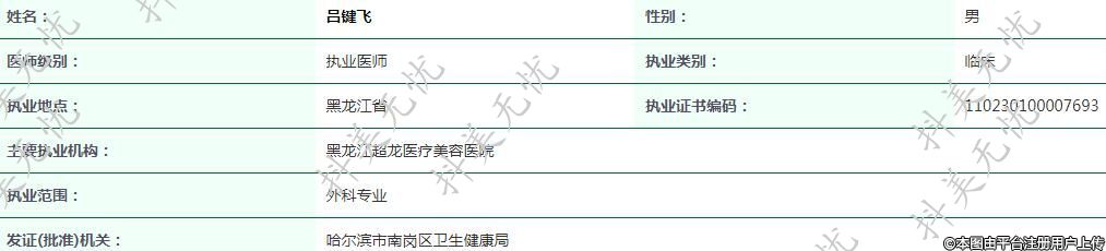 黑龍江超龍醫(yī)療美容執(zhí)業(yè)醫(yī)師