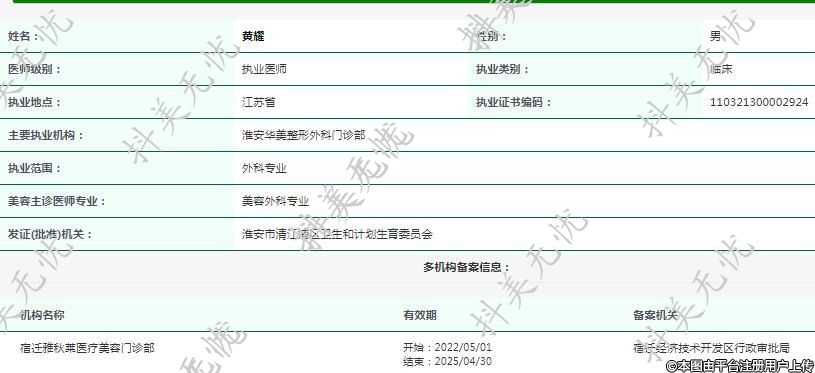 主要執(zhí)業(yè)機構(gòu):淮安華美整形外科門診部