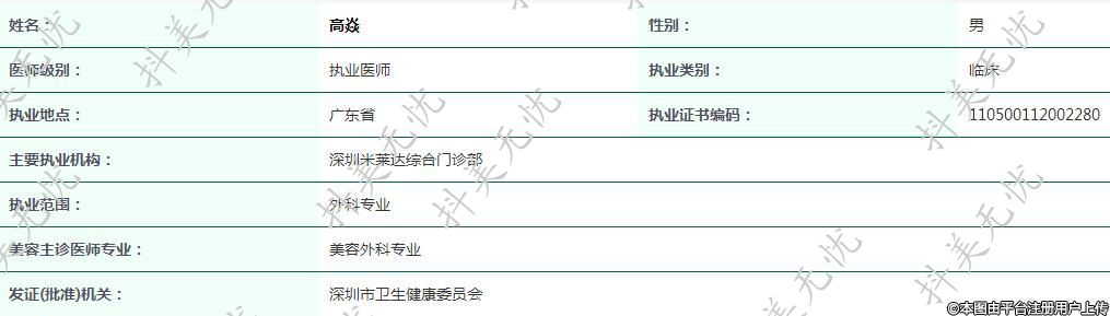主要執(zhí)業(yè)機(jī)構(gòu):深圳米萊達(dá)綜合門(mén)診部