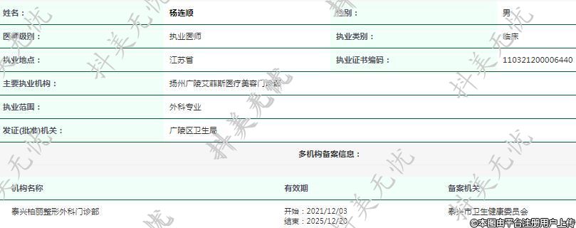 主要執(zhí)業(yè)機構(gòu):揚州廣陵艾菲斯醫(yī)療美容門診部