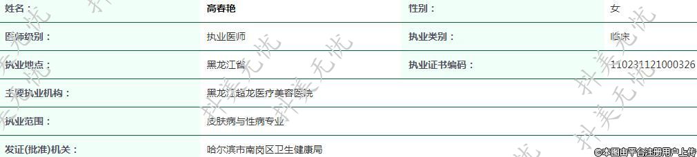 黑龍江超龍醫(yī)療美容執(zhí)業(yè)醫(yī)師