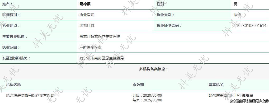 黑龍江超龍醫(yī)療美容執(zhí)業(yè)醫(yī)師