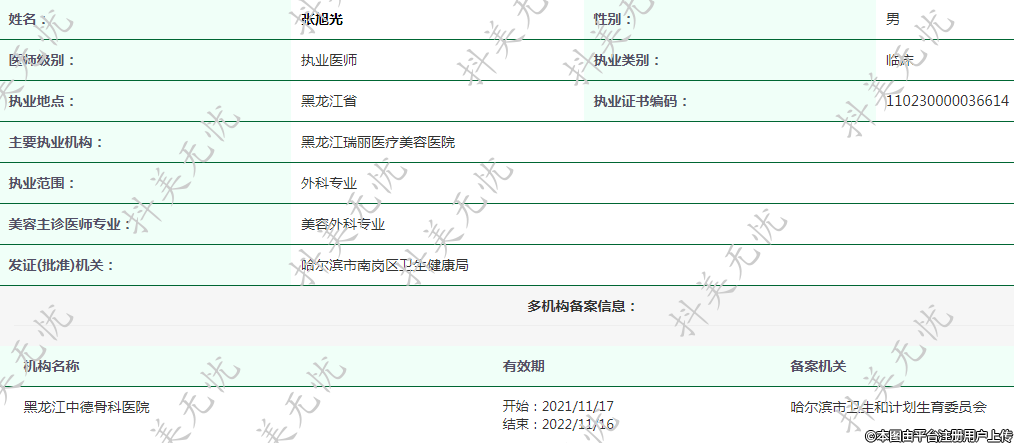 主要執(zhí)業(yè)機(jī)構(gòu):黑龍江瑞麗醫(yī)療美容醫(yī)院