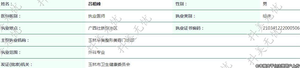 主要執(zhí)業(yè)機(jī)構(gòu):玉林華美整形美容門(mén)診部