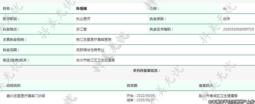 主要執(zhí)業(yè)機(jī)構(gòu):椒江藝星醫(yī)療美容醫(yī)院