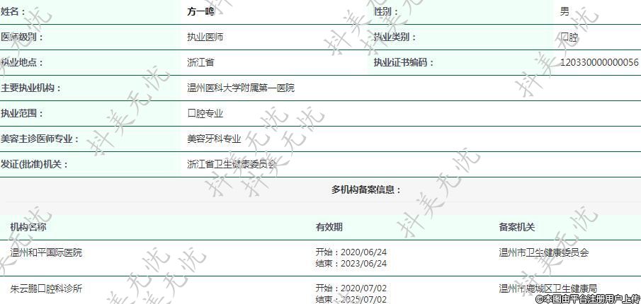 執(zhí)業(yè)范圍:口腔專業(yè)