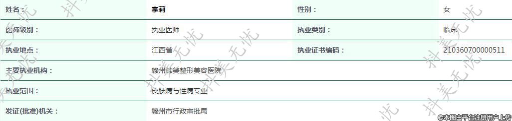 主要執(zhí)業(yè)機(jī)構(gòu):贛州韓美整形美容醫(yī)院