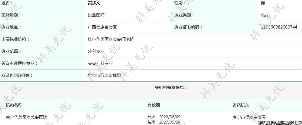主要執(zhí)業(yè)機構:桂林華美醫(yī)療美容門診部
