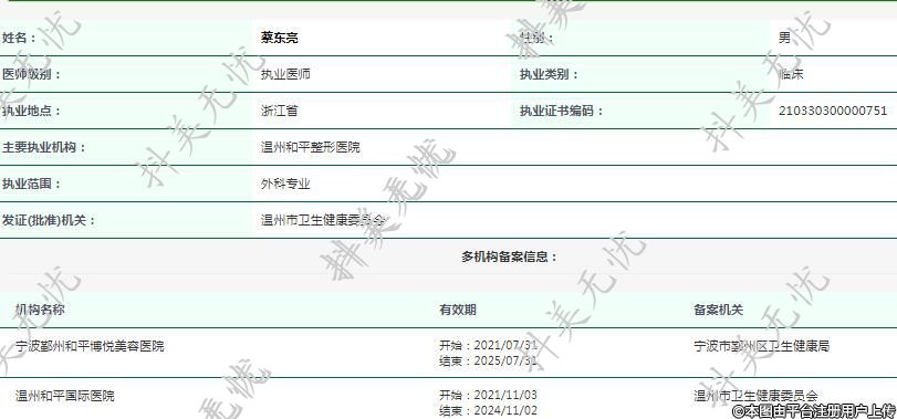 主要執(zhí)業(yè)機構:溫州和平整形醫(yī)院