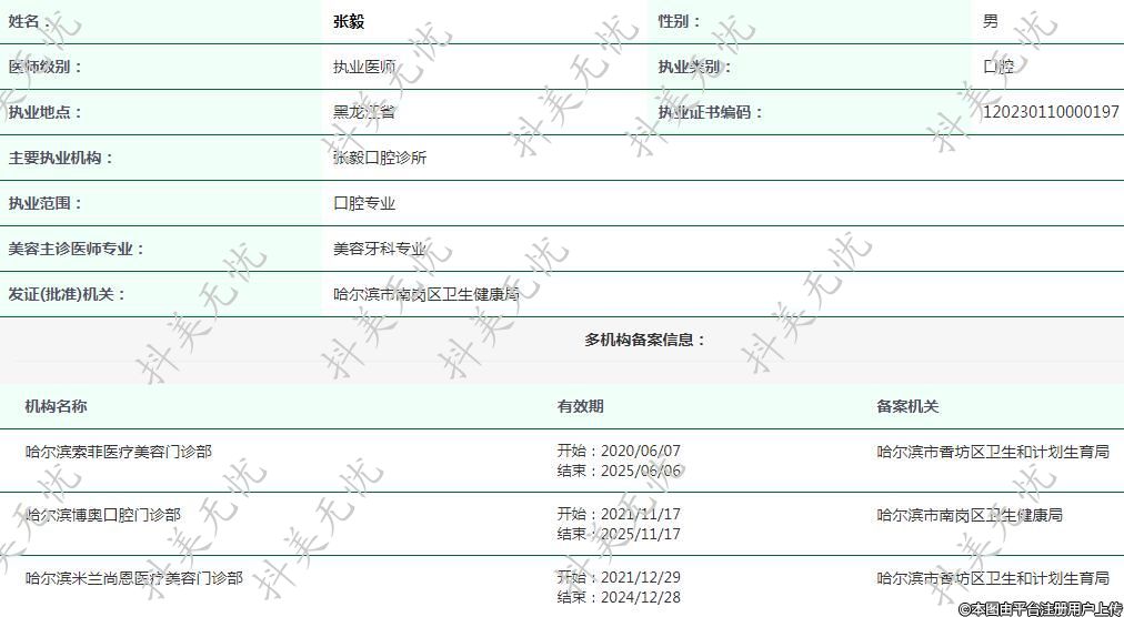 主要執(zhí)業(yè)機(jī)構(gòu):張毅口腔診所