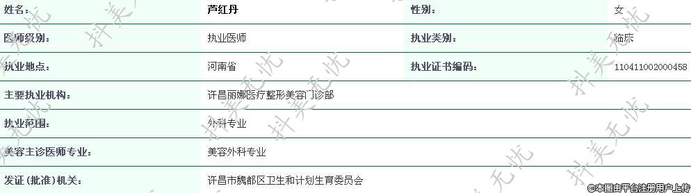 主要執(zhí)業(yè)機(jī)構(gòu):許昌麗娜醫(yī)療整形美容門診部