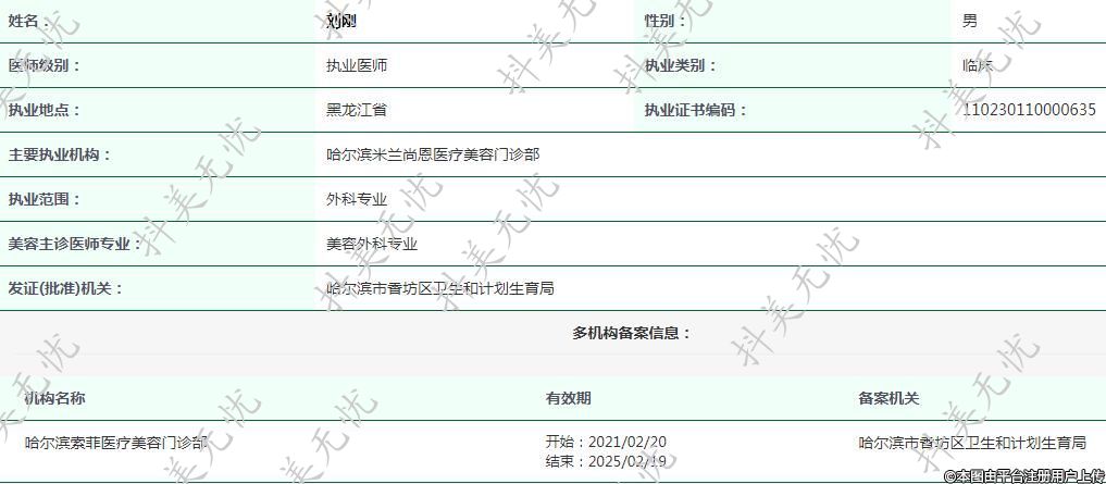 主要執(zhí)業(yè)機(jī)構(gòu):哈爾濱米蘭尚恩醫(yī)療美容門診部
